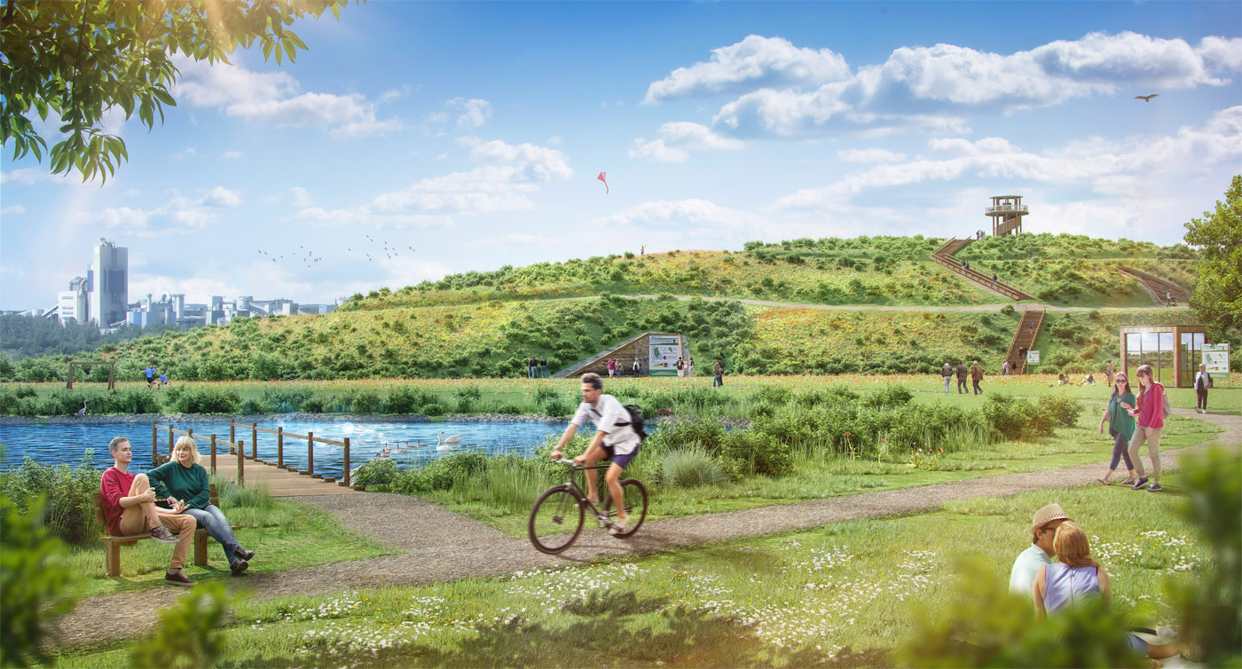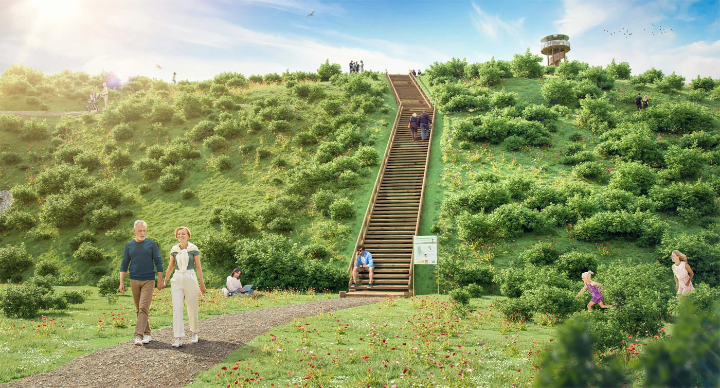 A 40-meter-high hill will rise and be transformed into a leisure park, offering stunning panoramic views of the surrounding landscape. This mountain will become a place of recreation and relaxation for the local community.