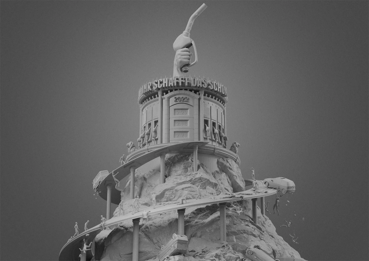 A 3D visual commentary on the soaring fuel prices during the Ukraine war in Germany